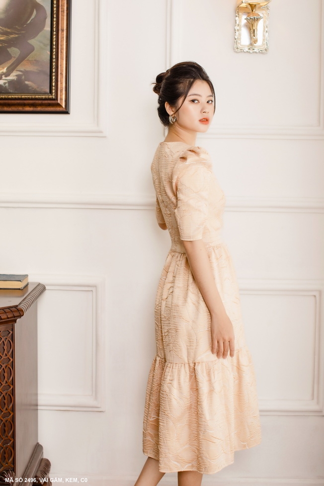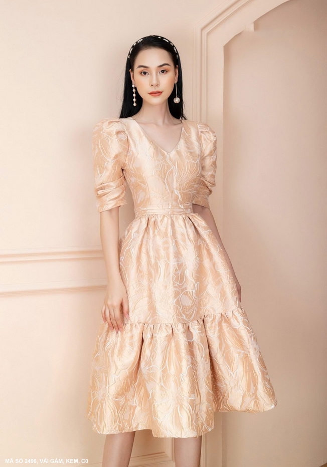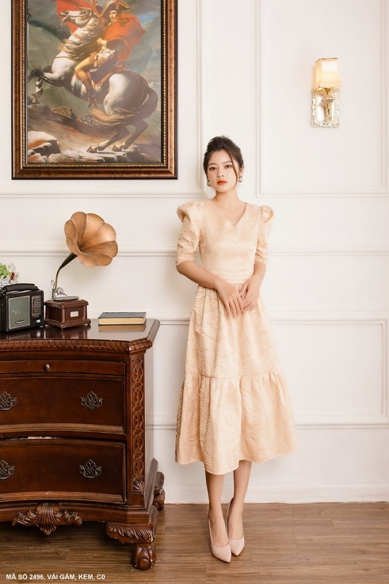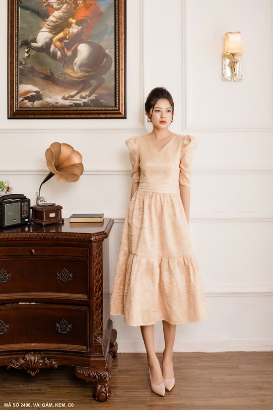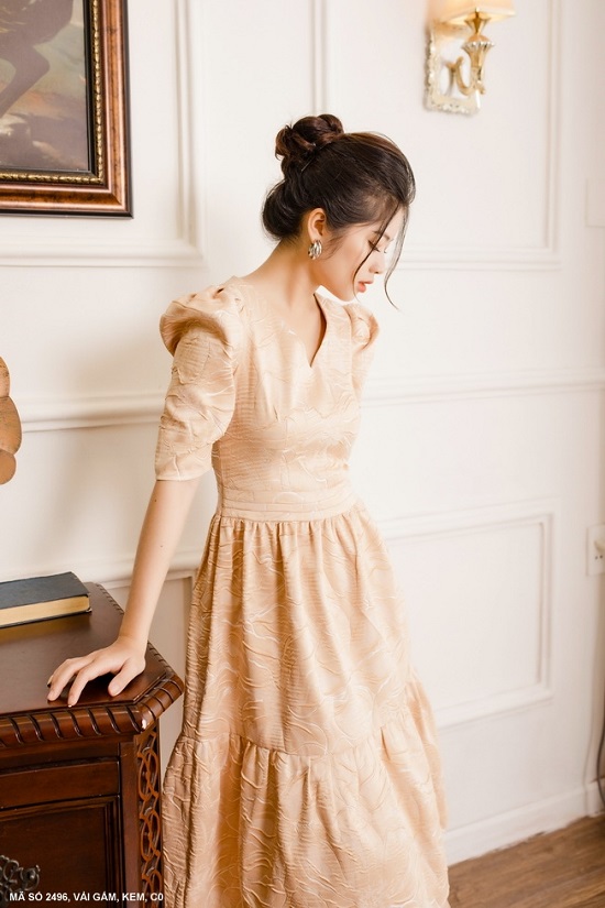 ĐẦM CỔ TIM TAY LỞ PHỒNG-2496
