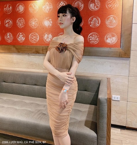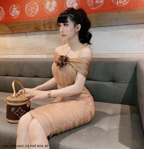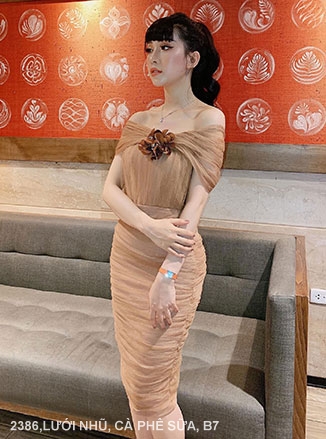 ĐẦM ÔM CỔ ÔM VAI ĐÍNH HOA HỒNG TRƯỚC NGỰC - 2386