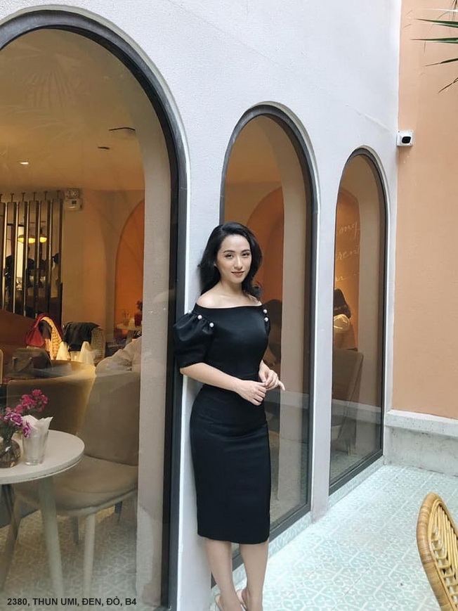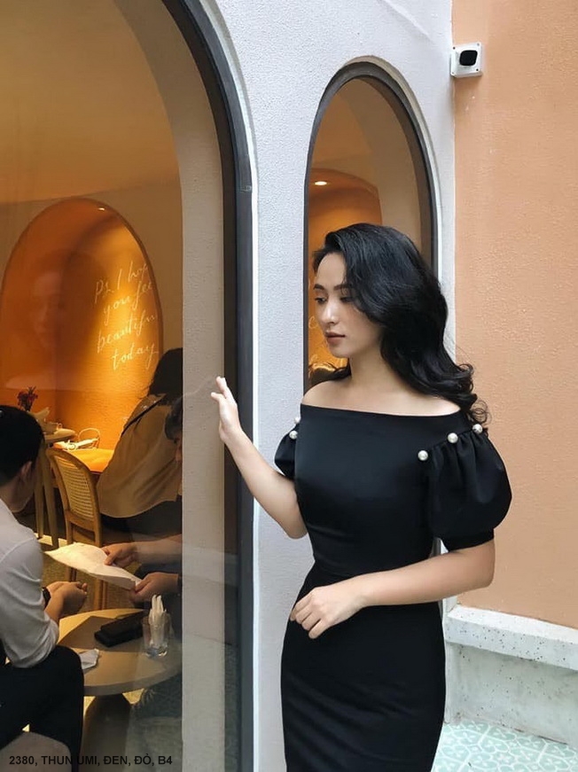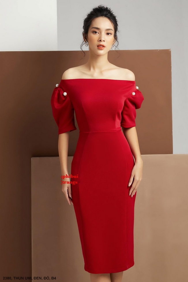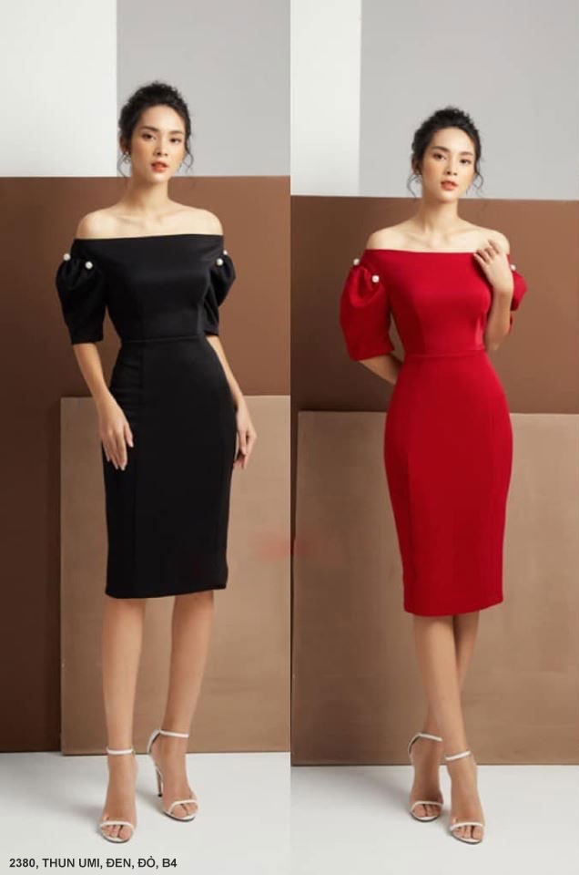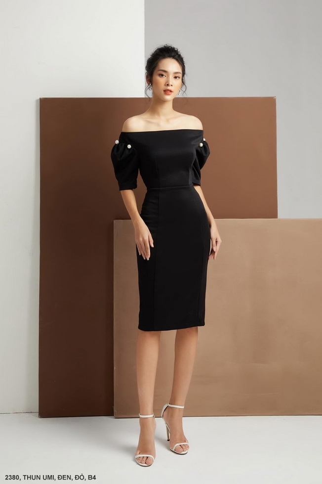 ĐẦM TAY NGẮN CỔ NGANG VAI EO THẮT - 2380