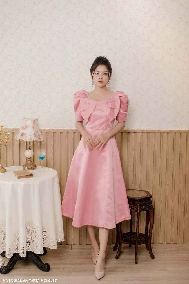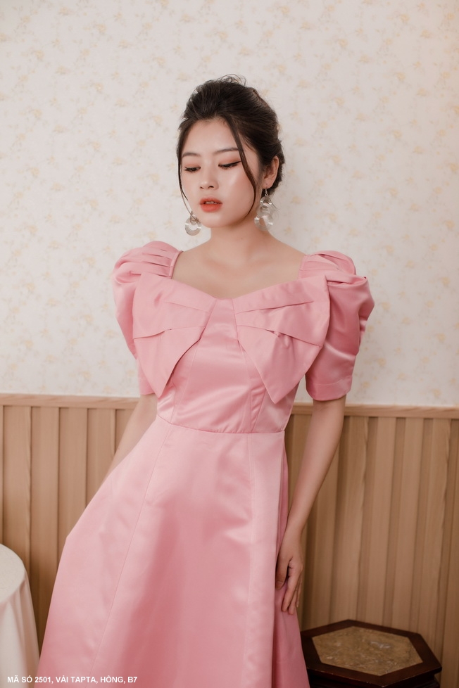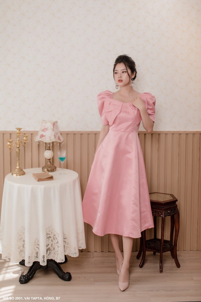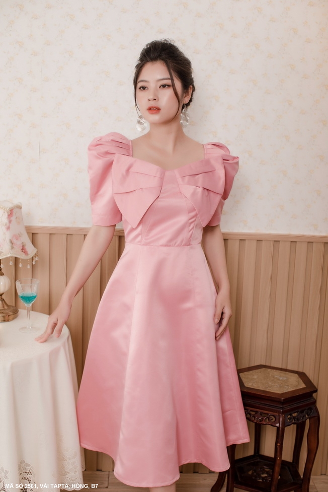 ĐẦM TAY NGẮN PHỒNG NƠ LỚN TRƯỚC NGỰC
