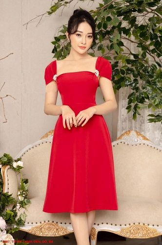 ĐẦM XÒE CỔ VUÔNG TAY NGẮN - 2397