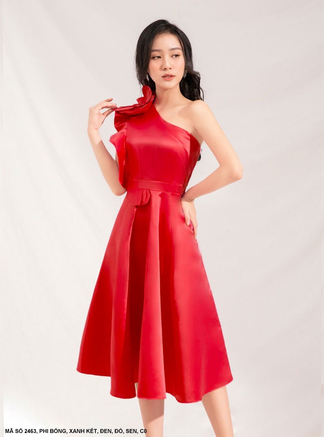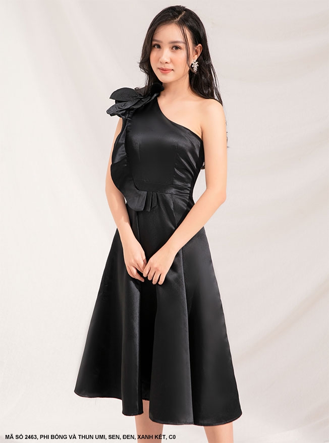 ĐẦM XÒE CỔ XÉO VAI ĐÍNH HOA LỚN - 2463